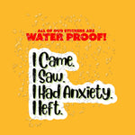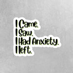 😅 Keep it real and get your I Came, I Saw, I Had Anxiety, I Left Sticker today! 🚶♀️