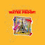 Each sticker is printed on high-quality, durable vinyl, ensuring it withstands the elements and remains vivid and appealing whether used indoors or out. With a selection of sizes ranging from 2 to 6 inches, these stickers are versatile enough to adorn laptops, water bottles, cars, or any surface needing a touch of French elegance.