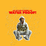 Stick it, love it, and let the world know… What Up Dog? 🐶