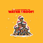 A. Yes! All of our stickers are waterproof and weatherproof. They're printed on durable vinyl that can handle rain, sun, — perfect for water bottles, laptops, car windows, and more.