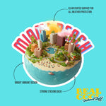 This unique sticker features a stunning, geometric representation of the iconic Miami Beach, complete with all its colorful charm and coastal vibes. Its crisp, vibrant colors pop with a modern isometric twist, capturing the essence of this sunny paradise.