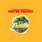 Q. Are your stickers waterproof?A. Yes! All of our stickers are waterproof and weatherproof. They're printed on durable vinyl that can handle rain, sun, — perfect for water bottles, laptops, car windows, and more.