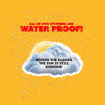 Spread positivity wherever you go with this uplifting Behind The Clouds The Sun Is Still Shining Sticker. Featuring a serene design of soft clouds with a radiant sun peeking through, this sticker reminds you that brighter days are always ahead. Perfect for water bottles, laptops, notebooks, or anywhere that could use a little extra sunshine and motivation.