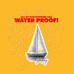 A. Yes! All of our stickers are waterproof and weatherproof. They're printed on durable vinyl that can handle rain, sun, — perfect for water bottles, laptops, car windows, and more.
