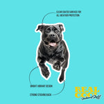 Crafted with vibrant, high-definition colors and printed on durable, waterproof and weatherproof vinyl, this sticker is built to last through every adventure—rain, shine, or snow. Whether you place it on your laptop, water bottle, car window, or gear, it brings bold canine energy wherever it goes.