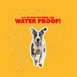 Whether you’re decorating your laptop, water bottle, or car, this sticker brings a loyal companion along for the ride! Made with durable vinyl, it's waterproof and weatherproof, so your pup can sprint through rain or shine.
