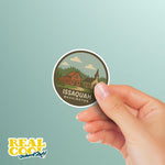 Celebrate the charm of the Pacific Northwest with this Issaquah Washington Sticker 🌲🏔️. Featuring a rustic red barn and quaint chapel nestled among evergreen forests beneath a soft, cloudy sky, this design beautifully captures the cozy, small-town feel of Issaquah. Its muted color palette and vintage-inspired style make it a timeless addition to any travel collection.