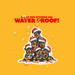 A. Yes! All of our stickers are waterproof and weatherproof. They're printed on durable vinyl that can handle rain, sun, — perfect for water bottles, laptops, car windows, and more.