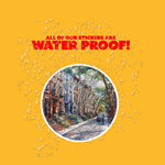 A. Yes! All of our stickers are waterproof and weatherproof. They're printed on durable vinyl that can handle rain, sun, — perfect for water bottles, laptops, car windows, and more.
