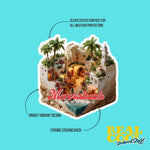 Step into the magic of the medina with this Miniature Marrakech Market Sticker, featuring a beautifully detailed isometric diorama of an old-world Moroccan town. This design captures the heart of Marrakech with its winding alleys, bustling souk stalls, palm trees, and traditional architecture—all perched on a rocky seaside cliff!