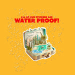 A. Yes! All of our stickers are waterproof and weatherproof. They're printed on durable vinyl that can handle rain, sun, — perfect for water bottles, laptops, car windows, and more.