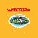 A. Yes! All of our stickers are waterproof and weatherproof. They're printed on durable vinyl that can handle rain, sun, — perfect for water bottles, laptops, car windows, and more.