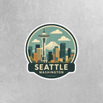 Seattle, Washington Sticker – Illustrated Travel Souvenir Celebrate the Emerald City with this Seattle Sticker! 🌲🌧️ This collectible circular sticker captures Seattle’s iconic skyline in a flat illustration, vector graphic style. Featuring a harmonious muted...
