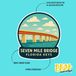 Bring the beauty of the Florida Keys wherever you go with this vibrant Seven Mile Bridge sticker! Featuring a bold, retro-inspired vector illustration of one of America’s most scenic drives, this design captures the endless stretch of roadway over turquoise waters beneath a sunny sky filled with soft clouds. Its clean lines, warm tones, and nostalgic travel-patch style make it a perfect keepsake for beach lovers and adventurers alike.