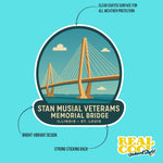 🌟 Honor the beauty of connection and craftsmanship with the Stan Musial Veterans Memorial Bridge Sticker — a bold tribute to the heart of the Midwest!