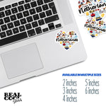 A. We offer sticker sizes from 2" to 6". Please note that our 2-inch size is considered a mini sticker — perfect for phones, notebooks, and small accessories!