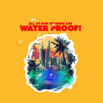 A. Yes! All of our stickers are waterproof and weatherproof. They're printed on durable vinyl that can handle rain, sun, — perfect for water bottles, laptops, car windows, and more.