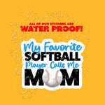 Show off your Softball Mom pride with our "My Favorite Softball Player Calls Me Mom" sticker! Whether you're cheering from the stands or driving the carpool, this sticker is the perfect way to let everyone know that you're the #1 fan of your all-star player. Stick it on your car, water bottle, or anywhere else that needs a little softball love!