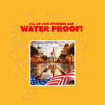 A. Yes! All of our stickers are waterproof and weatherproof. They're printed on durable vinyl that can handle rain, sun, — perfect for water bottles, laptops, car windows, and more.