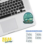 Capture the magic of the Pacific Northwest with this stunning St. Johns Bridge sticker! Designed in a nostalgic, mid-century travel style, this artwork highlights the elegant Gothic arches and sweeping cables of Portland’s most iconic bridge. Set against a serene sky and tranquil river backdrop, its soft teal and golden hues perfectly reflect the charm and calm beauty of Oregon’s landscape.